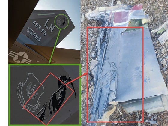 The "LN" code on the tail of the downed F-35 fighter indicates that this aircraft is stationed at RAF Lakenheath in Britain, the base of the 48th Fighter Wing.