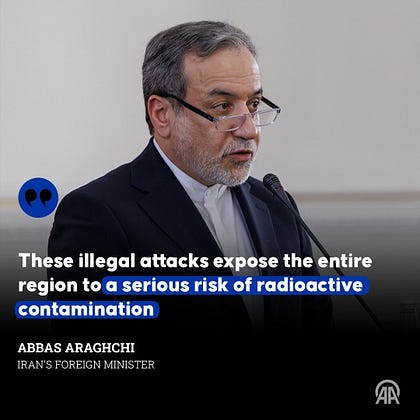 Iran's Foreign Minister Abbas Araghchi warned Saturday that US-Israeli attacks on the country’s nuclear facilities could expose the entire region to radioactive contamination t.co/LQJ9shJjQU