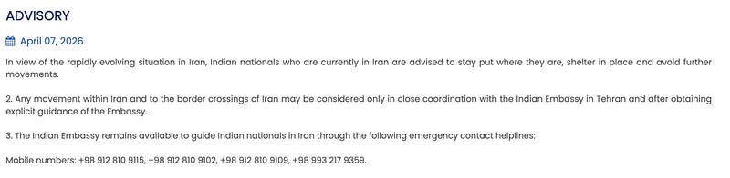 BREAKING: India's Ministry of Foreign Affairs calls on its residents in Iran to shelter in place, with the embassy telling Indians to avoid all electric installations for the next 48 hours
