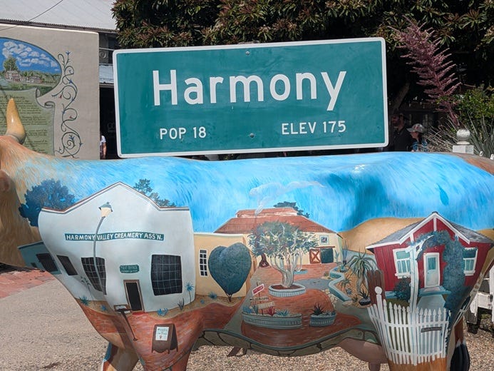 Today’s outing took us to tiny Harmony, California, population: 18