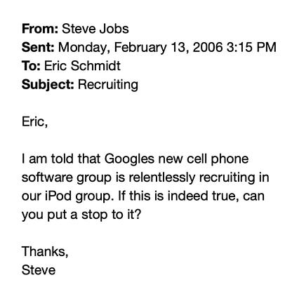 That’s the real kind of competition most people underestimate. Not product vs product, but team vs team.jobs didn’t see Google as “a phone competitor.” He saw them as a talent competitor. If they got the right people out of Apple, the rest would follow.