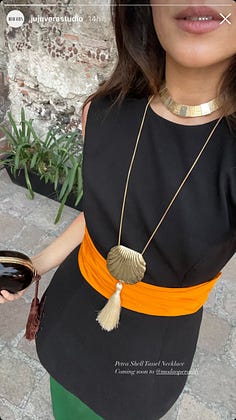 Looks like Juju Vera is introducing a Petra shell necklace with thread tassel!! I’ve been imploring you all to look for vintage tassel items and I feel validated!!