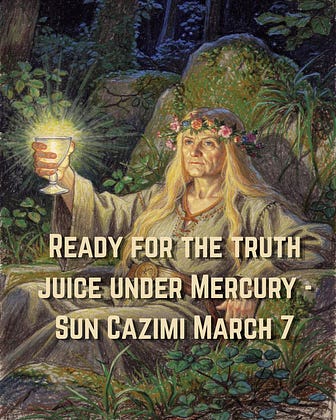 Mercury Retrograde and Sun join together (Cazimi) at 17 Degrees of Pisces on March 7 2026.