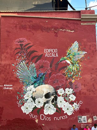 “I know that God never dies.” But which god? The hummingbird is the uncanny symbol of Huitzilopochtli, who sips the nectar (blood) of blooming flowers (slain human bodies). The old gods always lurk just beneath the surface in Mexico— one reason I’m in love with this joyfully macabre country.