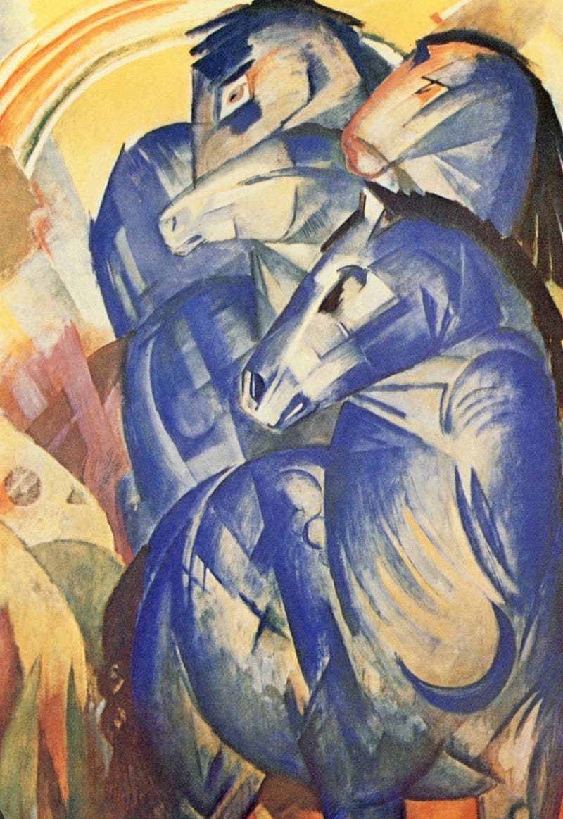 Wild that Franz Marc painted “Tower of Blue Horses” with no possible knowledge of the Chauvet horses. Synchronicity across millennia.