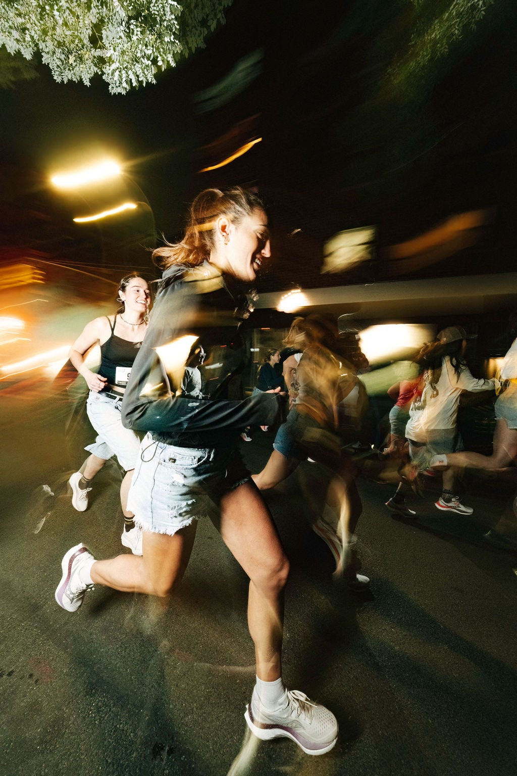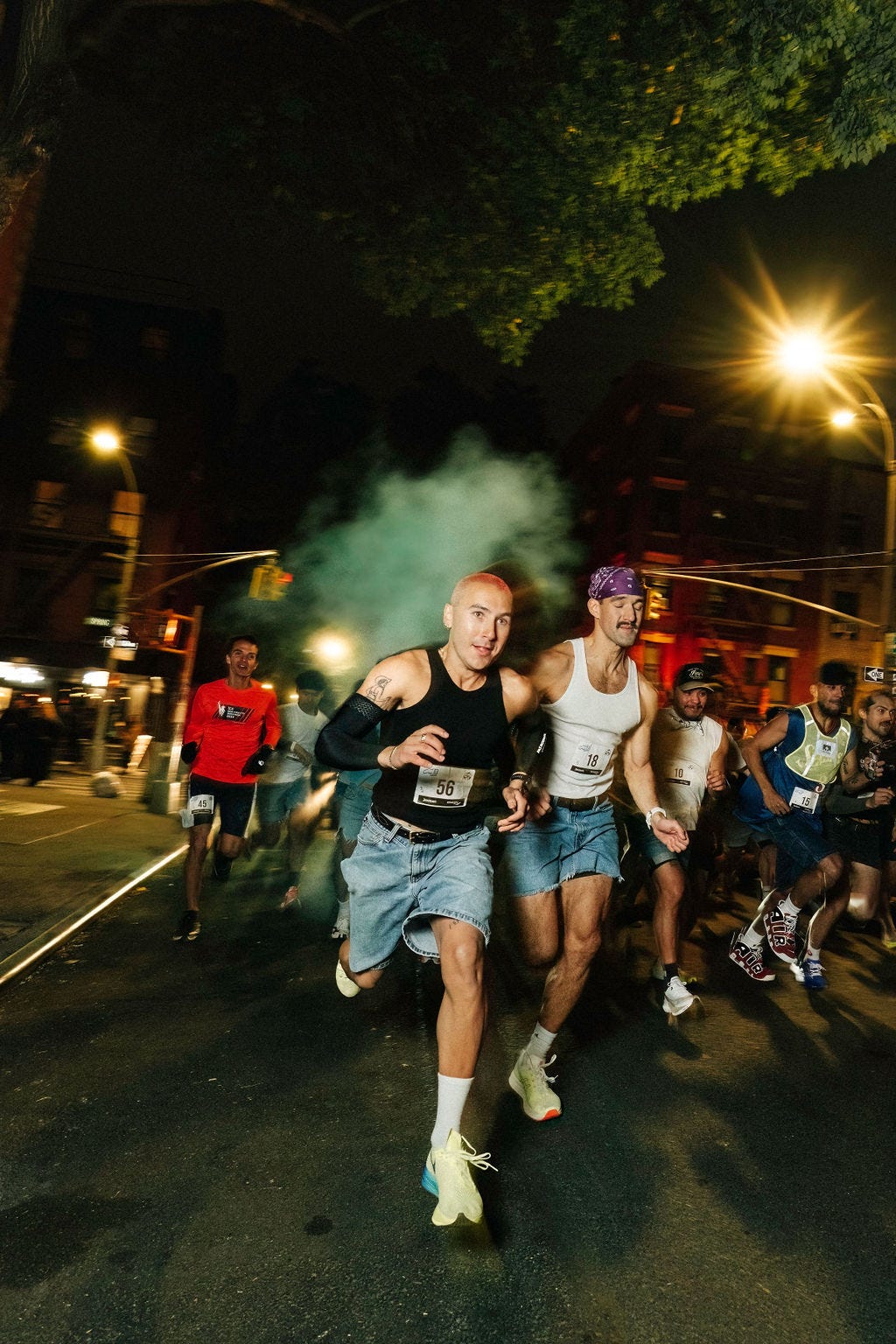 Last night 3sixteen put on our inaugural Jorts Mile: a one mile unsanctioned race through downtown NYC to be run exclusively in 100% cotton jorts. We wanted to put a community event together where people could have fun getting ridiculous fits off and have a good time, but serious runners showed up (Men’s winner clocked a 4:30, women’s 5:11 - in jorts.)