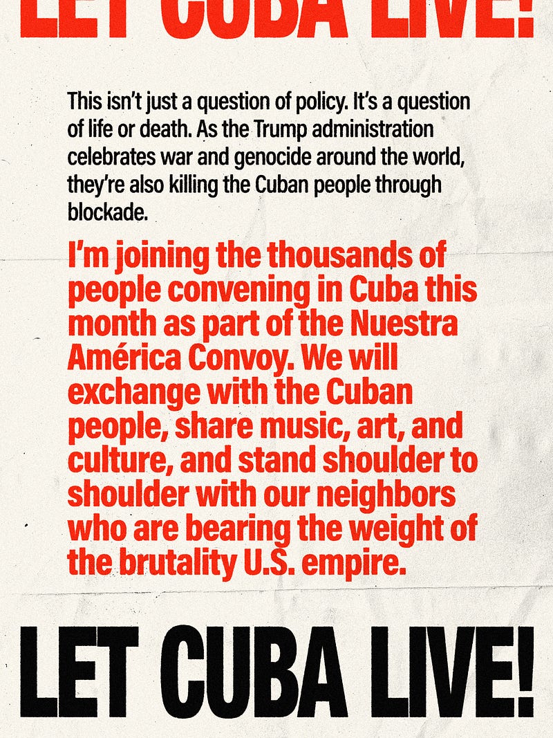 You heard it right - I’m headed to Cuba as part of the Nuestra America convoy. Honored to share my insights and experiences with the rest of you here on Substack in the coming weeks. Free Cuba!