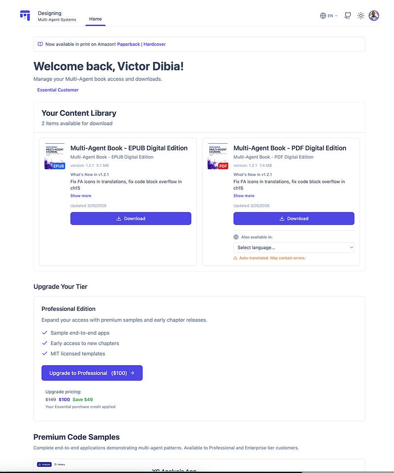 I am excited to share a critical (beta) update to the Designing Multi-agent Systems book (digital edition for now) - automated translation to multiple languages!