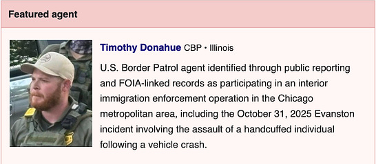 Every week we will highlight a federal agent who has brought terror onto the streets of the USA as a part of Donald Trump's fascist military push through the country.