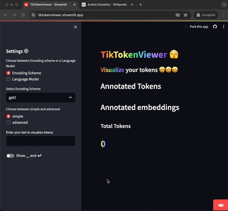 After watching Andrej Karpathy’s Lets build the GPT Tokenizer video (finally!), where he also introduced the TikTokenizer vercel app to visualize, how a tokenizer works based on BPE but also how it varies on the underlying encoding scheme / model, I couldn't prevent myself from re-implementing the Token visualizer app myself.