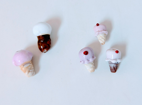 On the left are beads I made last year when I have just begun my lampworking obsession. On the right are the most recent beads I made.