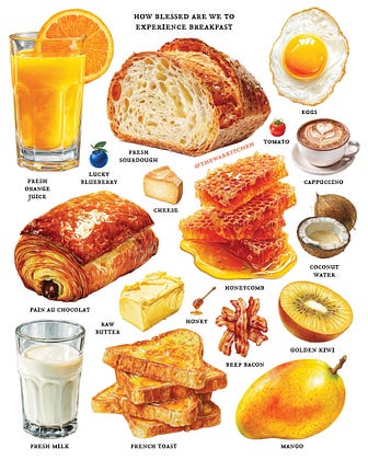 A great breakfast is unmatched. The way butter spreads on toasted sourdough. Custardy egg yolk. Great cheese. Fruit. Honey. Sips of freshly pressed orange-pomegranate juice. A beautifully brewed cappuccino 17 minutes later. Pain au chocolat if you deserve a treat (you do). Breakfast is the best meal of the day. By far.