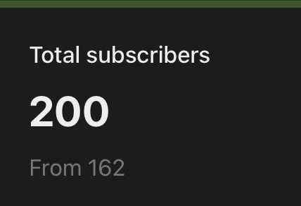 2: Screenshot that says “Total Subscribers: 200 from 162.”