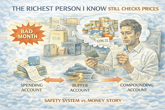 We built a simple structure: one account for spending, one for short-term buffers, one for long-term compounding. Not because he needed it. Because his nervous system did.