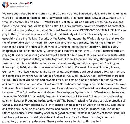 Trump is talking about a 10% tariffs increase on countries which are against the U.S. taking over Greenland.