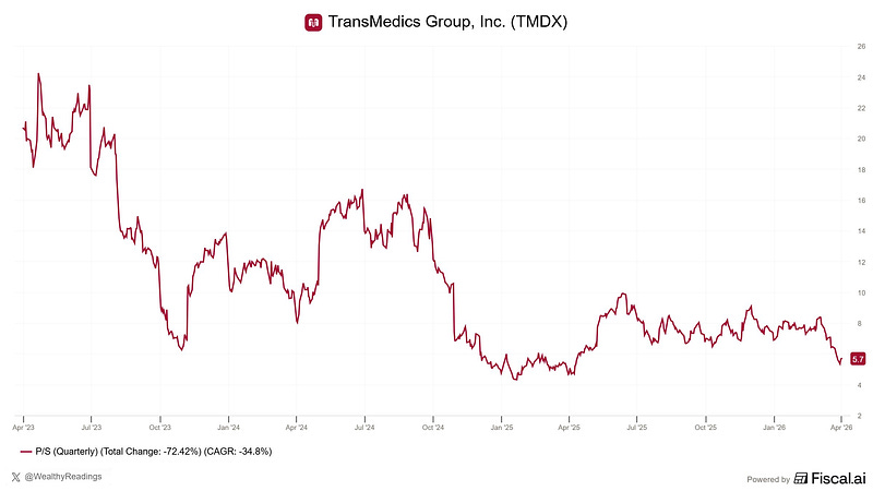Margins might hurt, as expected a few weeks ago, due to R&D spending and more flights, but Transmedics remains a very healthy company. I still don't understand why the market sells it, nor why it trades at its lowest P/S ever with so many tailwinds, but well.