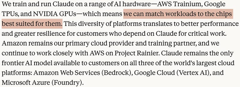 Heck, Anthropic management is even telling us they train their model on different hardware for task optimization. Multipled hardware systems for optimized performance.