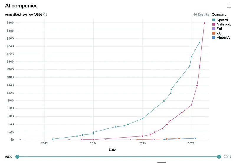 Anthropic climbed from $0 to $30B+ ARR in ~2 years, the fastest company to reach this run rate, ever, while being supply constraint.