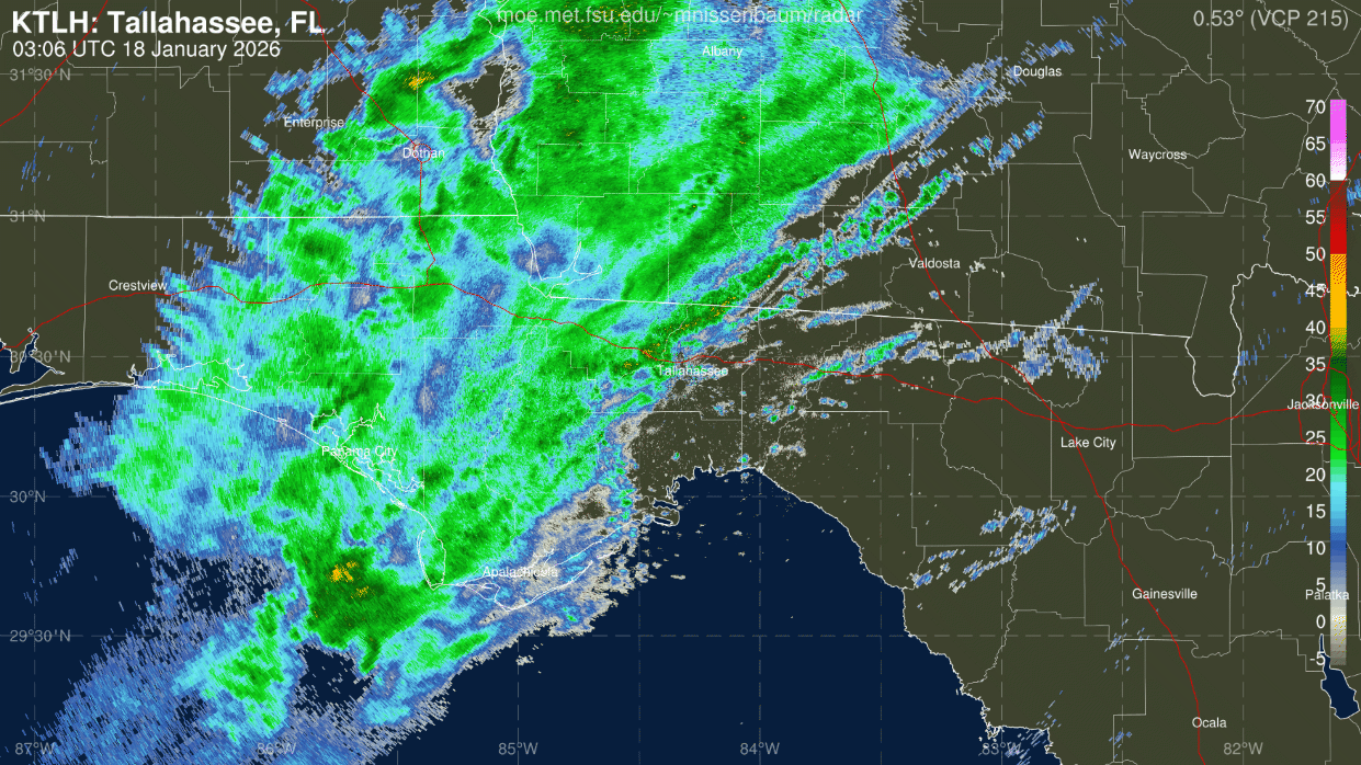 Overall, precip is developing a little faster than expected tonight, which may signal a slightly stronger Gulf low is in the works than models predicted. We'll see if there are any twists in store, but overall the Tallahassee area should set our snow expectations at zero and be pleasantly surprised from there. I'll update in the morning.