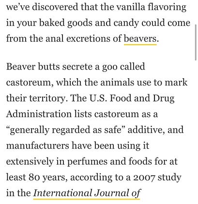 vanilla flavouring = beaver anus serum