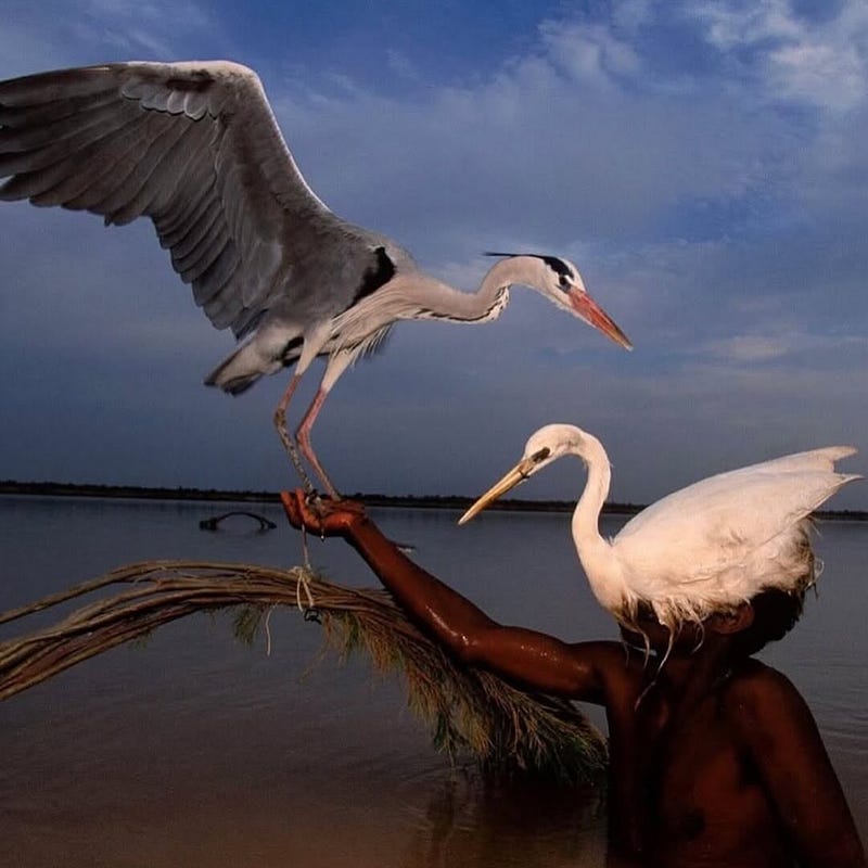 Mohanis fishermen are known to wear bird masks to sneak up on and catch heron in the Indus River