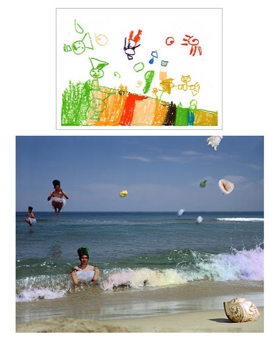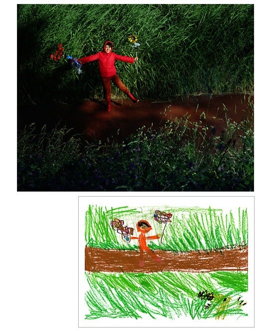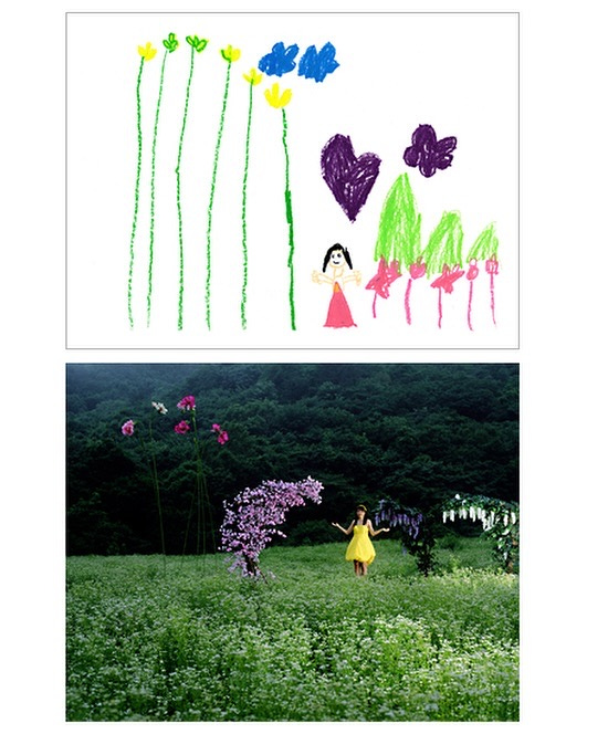Children’s drawings recreated as staged photographs by Jung Yeondoo (2004)