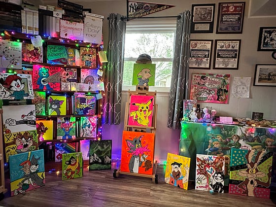 I have a lot of art available in my Art Studio. There are suggested prices on my website, but I am happy to take whatever you offer - even $0. I have given more work away for free than I’ve gotten $$ for because the joy that the characters and color bring people is what matters most to me.