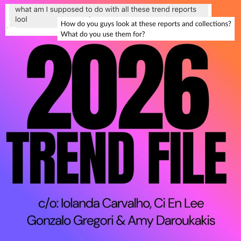 Last year, I wrote a guide to explain my personal process for decoding this onslaught of trend reports. I often use them as a starting point for early stage desk research on a project. But I’d never take them at face value, since many of these reports are basically marketing documents.
