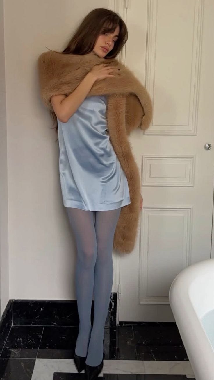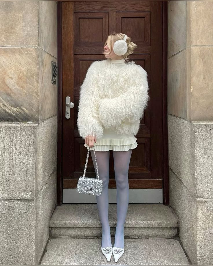 unexpected matches 027: faux fur + blue stockings