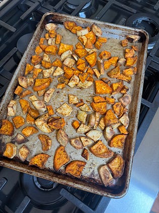 if you want to perform just one act of self-care this Sunday, turn on your oven to 425f, chop up whatever veggies are lingering, toss with oil and salt and maybe one of those seasoning blends you bought and never used, then roast until tender and crispy on the edges. store in a Tupperware in the fridge and eat a few bites of roasted veggies for snack time this week.