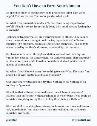 We often seek nourishment through achievement, validation, and usefulness. But what if true nourishment isn't something we earn, but something we receive simply by being present with another?