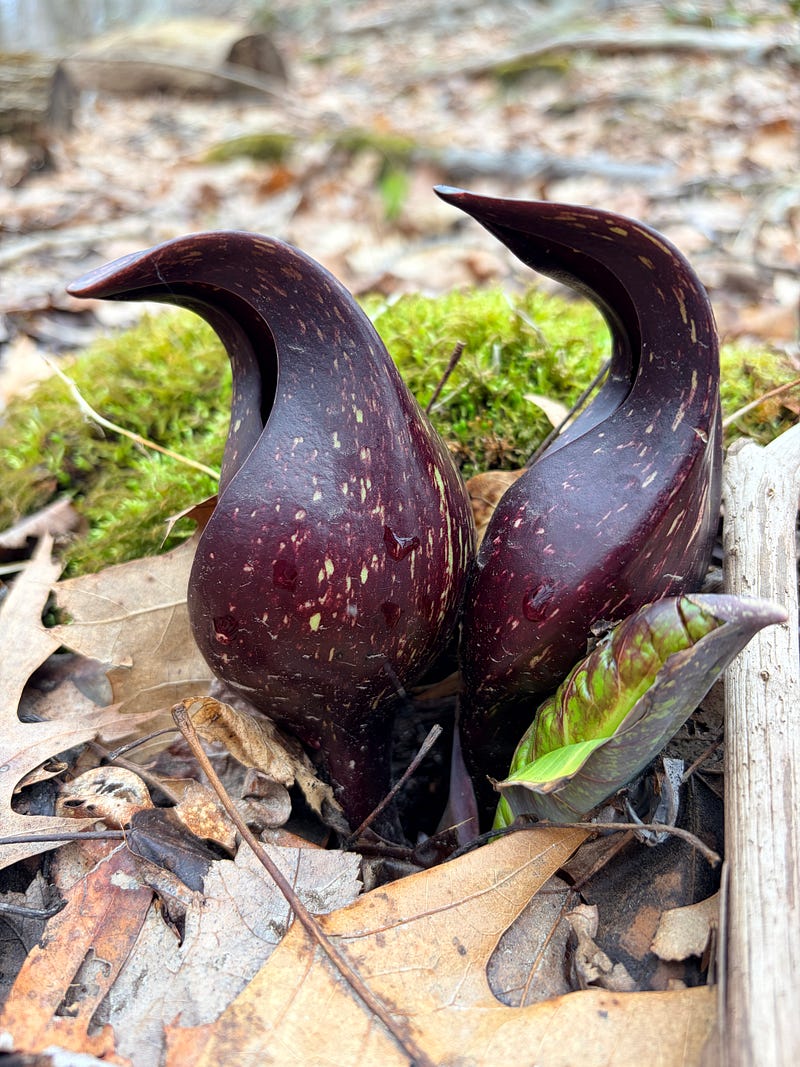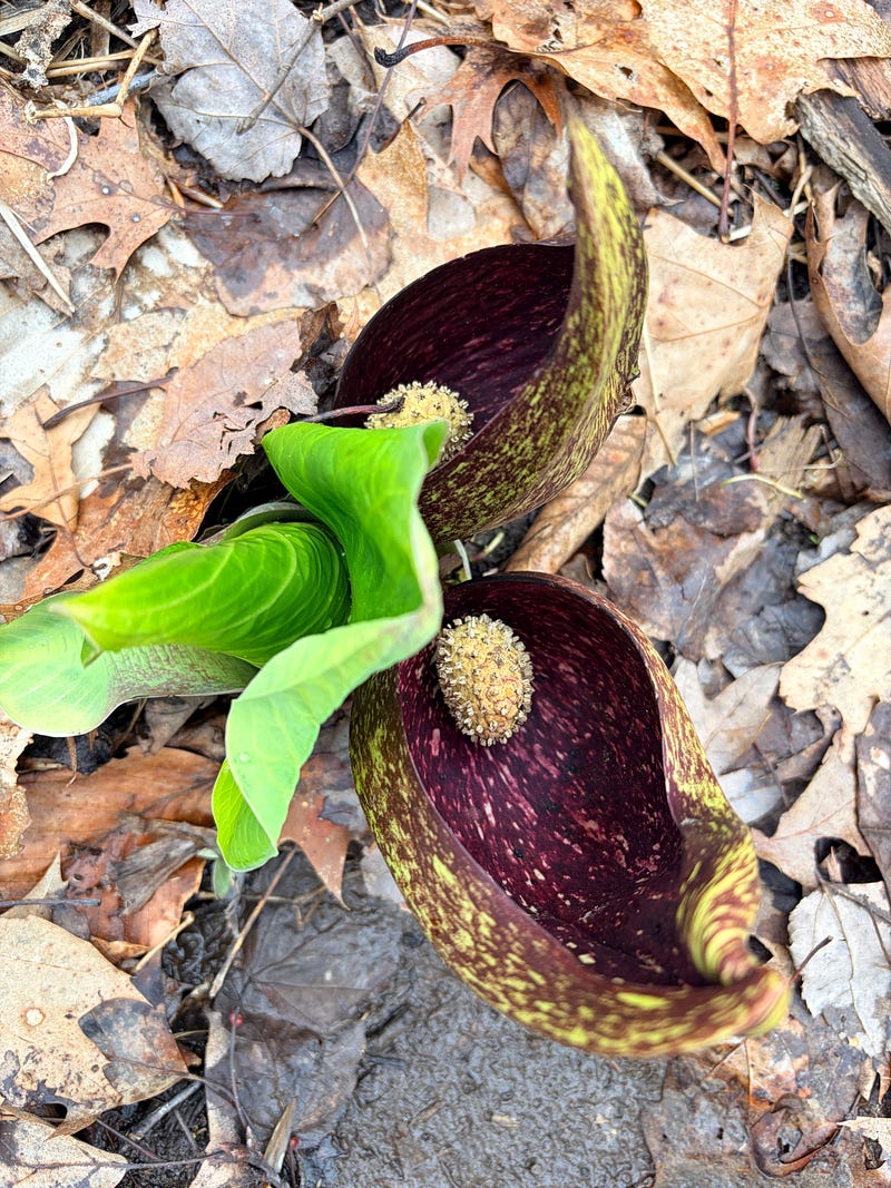 The smell of skunk cabbage brings me back to summers as a kid, tearing through the woods with friends, kicking up mud and stomping through those big green leaves. (Apparently no one taught us about “Leave No Trace.”) I don’t think I ever saw skunk cabbage in the spring, although I’m sure I trampled some. Moving back to New England as an adult has brought up so many memories and new perspectives. I tread lighter now. I’m quieter in the woods. I also notice a lot more. And now I know that skunk cabbage looks like THIS before getting big and green. I also just learned that its skunky scent is the result of thermogenesis. Skunk cabbage can produce its own heat, melting the last bit of snow and attracting pollinators in the still-cold early spring. What a cool plant. Hopefully I can make up for some of that stomping by teaching my daughter to explore these woods respectfully. 💚