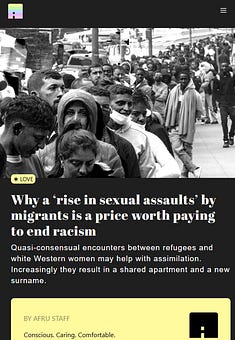 Recent studies by AFRU show that “quasi” rape committed by migroids is reducing both the fertility and the housing crises.