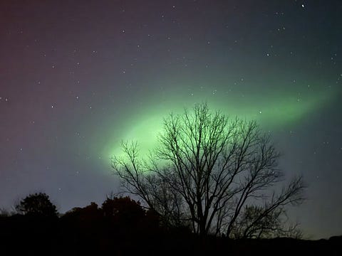 If you didn’t get a chance to see the northern lights last night, the 11th, tonight presents another chance. Find a dark place after sunset and look through your camera in night mode for the brightest colors. Dark pinks were visible with the naked eye last night, as we were foggy blobs that with cameras appeared as bright green.