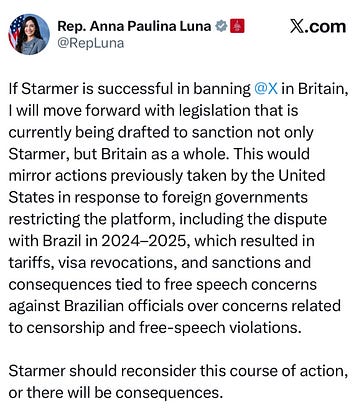 Trump’s bullies threatening the UK for daring to contemplate banning Elon Musk’s racist deepfake porn site.