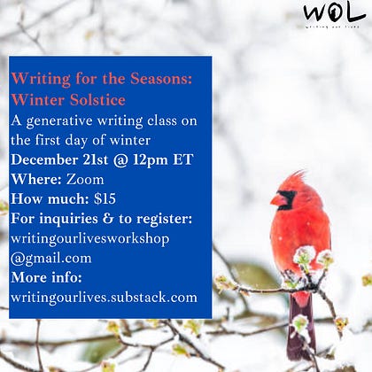 We’ll talk about this and more at noon tomorrow EST, at the online Writing for the Seasons: Winter Solstice. How are you celebrating the return of the sun?