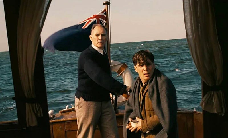Charles Lightoller was an inspiration for the character played by Mark Rylance in Christopher Nolan’s 2017 film Dunkirk, seen here with a rescued soldier played by Cillian Murphy.