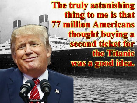 “The truly astonishing thing to me is that 77 million Americans thought buying a second ticket for the Titanic was a good idea.”