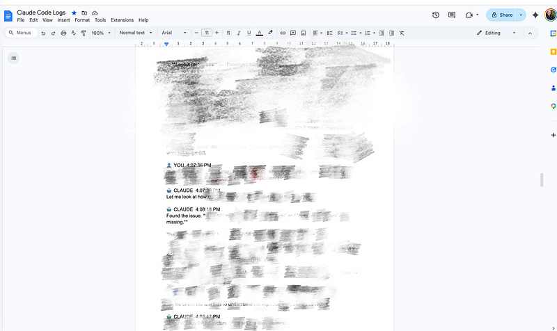 I run a root-level script that configures Claude so whenever I start using the Claude CLI in VS Code, our conversations are automatically backed up to Google Docs via n8n. I think I need a simple logging system to document these conversations properly.