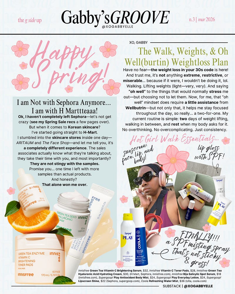 If this is your first time coming across me, Gabby’s Groove is my rhythm, in real time—a monthly curated roundup of favorites, thoughts, likes, dislikes, recommendations, and the small observations I’ve found myself wanting to share.