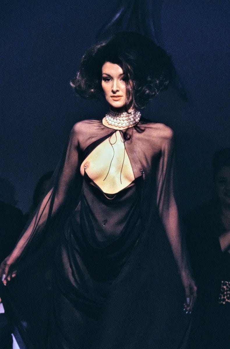 chappell’s boobs deserved an award too! i saw the original 1998 Mugler couture version of the dress on display at the Brooklyn Museum in 2023, and of course, Erica Van Briel rocked it on the runway first after Mugler heard she’d gotten her nipples pierced