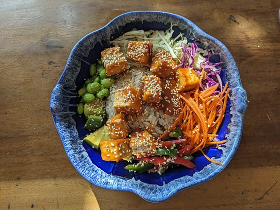 💠A glimpse into my nomad life. Inspired by Claire Polders’ beautiful bowl, I got my own seasonal lunch bowl with miso chili tofu today. 😋 Nang Sabai, Haad Yao.