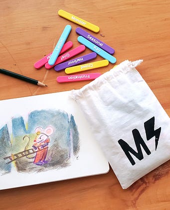 They're color-coded prompt sticks with words to shake you out of creative ruts, spark new ideas, or just make you play again (and ditch Pinterest for an afternoon!)