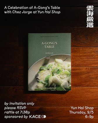 In April, I reviewed the newly launched vegan Taiwanese cookbook A-Gong’s Table, by my friend George Lee (aka Chez Jorge). At the time, Lee was unable to come launch his book, due to a personal obligation in Taiwan. Now, he’s finally in NYC and we’re gathering to celebrate all the hard work that he and photographer Laurent Hsia put into the book. We’ll have a special dessert and drinks menu by George, signed copies, and a raffle.