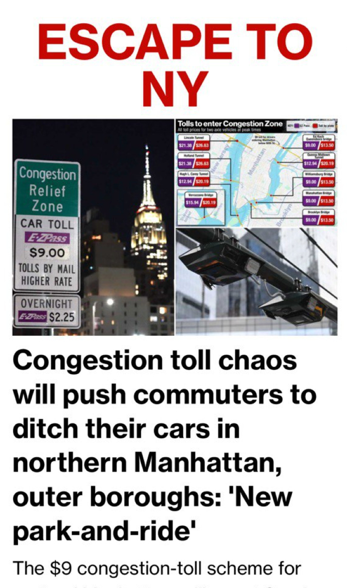 Escape from New York was a warning. Right as criminals are burning people alive in the subway and shoving them onto the tracks, New York Governor Kathy Hochul has implemented a $9 congestion tax for all cars entering lower Manhattan. MTA President Janno Lieber held a ceremony to celebrate their brazen theft, brushing off crime as “in people’s heads” - commissars like him never need to ride the subway or bear the consequences of their actioins.