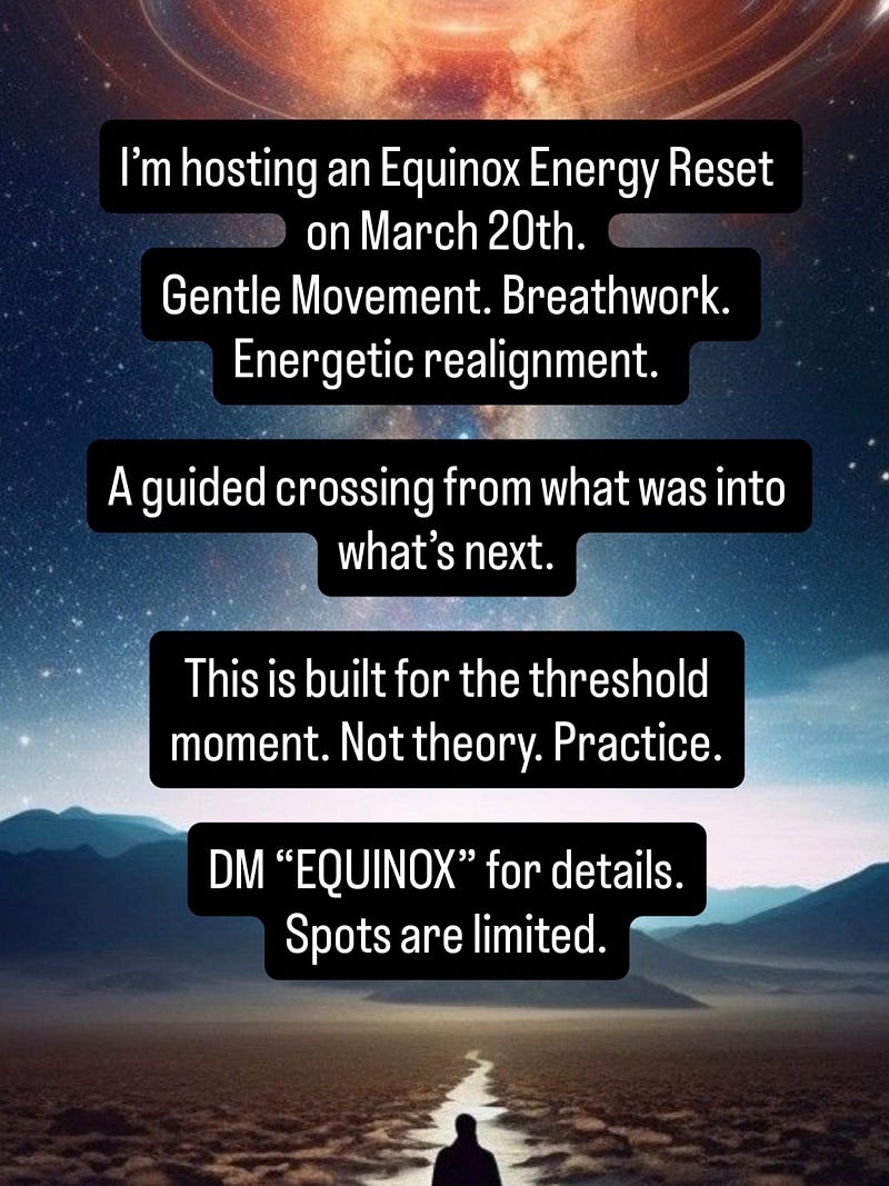 I’m hosting an Equinox Energy Reset on March 20. Movement, breathwork and energetic realignment designed for exactly this moment.