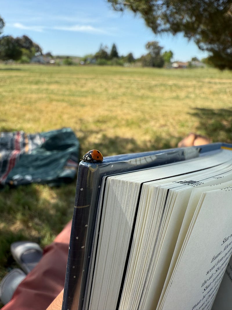 my friend gave me this handmade bookmark & a ladybug joined me as i read underneath a tree on a sunny afternoon