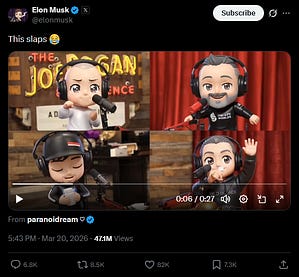 Elon’s ghetto-tier cultural/aesthetic taste never ceases to amaze me, it’s honestly sad that he runs one of the most important engines of culture in today’s world