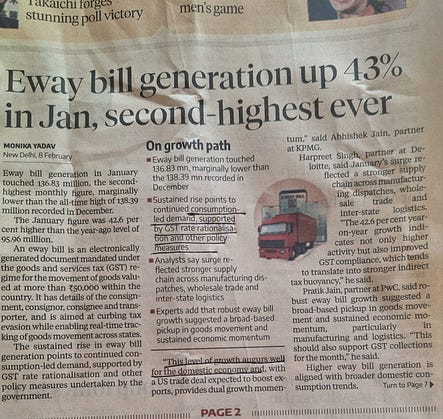 Today’s Business Standard front page news is one such footprint: