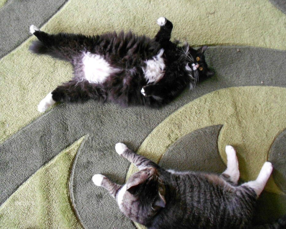 This was Elvis, a kitty I had many years back. He was like an older brother to Bear, they were best buddies before Harry arrived. I just had a most comforting thought that is making me cry just the same. Bear is with his best buddy now, over the Rainbow Bridge. And they are feasting because they both loved to eat.